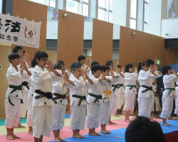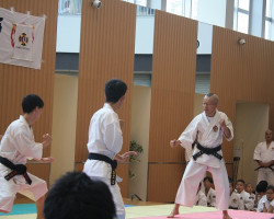 デモンストレーションは、少年部の「育てる拳法」、一般部・助教による「鍛える拳法」、シニアによる「養う拳法」として少林寺拳法をお知らせすることをコンセプトとして、誰でも「その気」「やる気」があれば体力に応じて少林寺拳法が出来る事を一般の方々に広く紹介しました。
